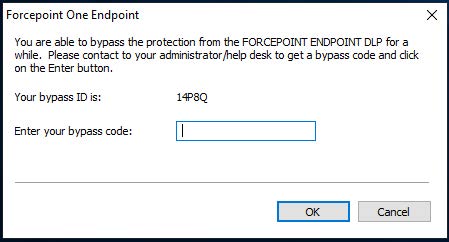 - Report the bypass ID to your Forcepoint DLP administrator.