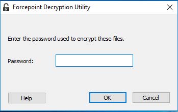 The Forcepoint Decryption Utility decrypts the files using the password you provided and places them in this path. Files that were encrypted with a different password are not decrypted.