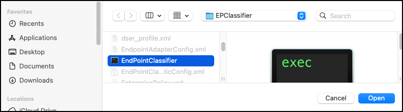 button and navigate to Library > Application Support > Websense Endpoint > EPClassifier, select EndPointClassifier, and then click Open.