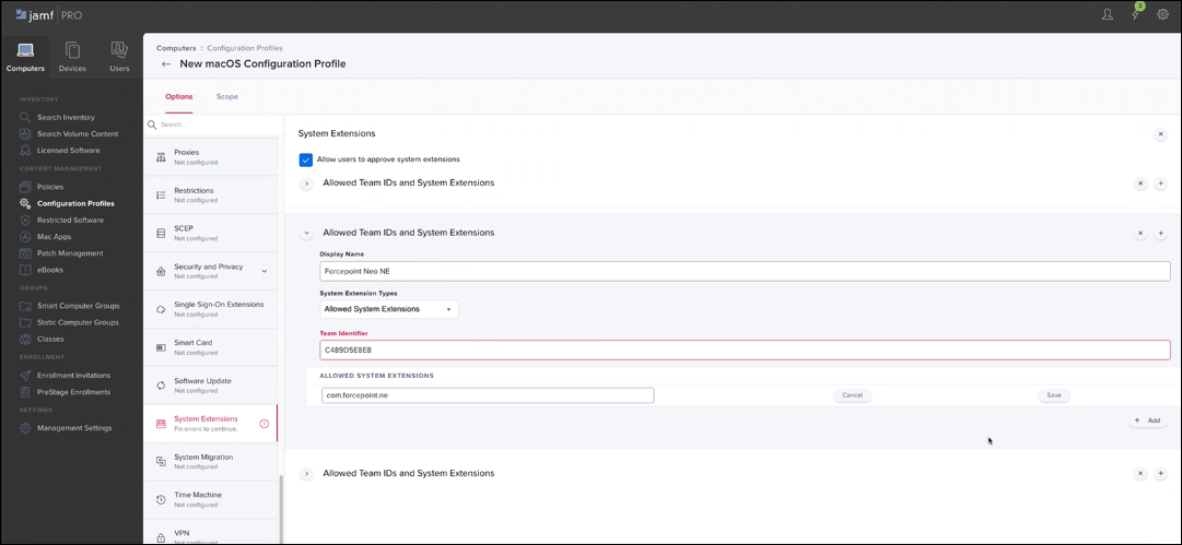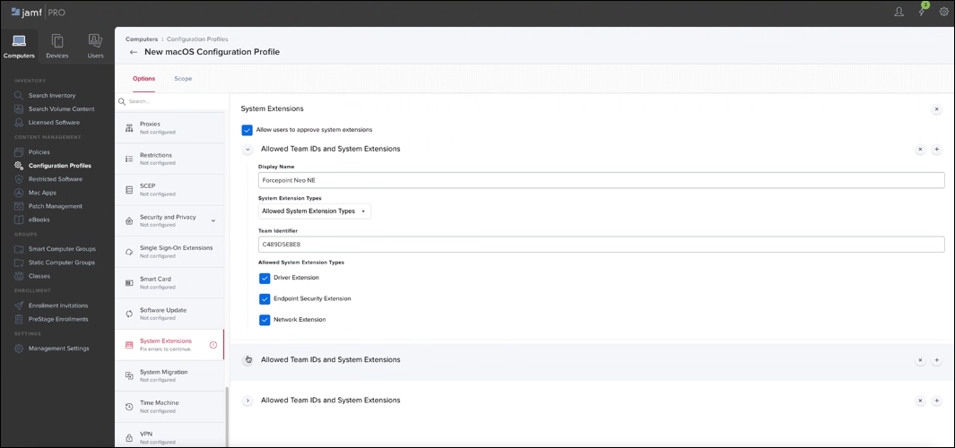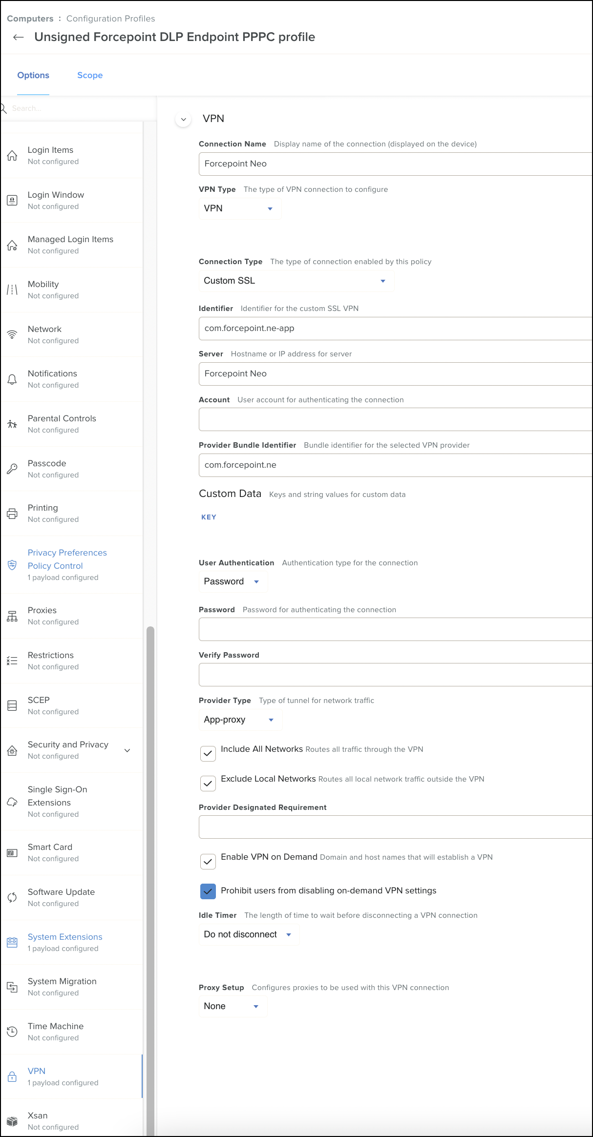 In order to suppress any dialogs related to the "fpneone" and "Forcepoint Neo NE App" processes, you can manually create the MDM profile. Do the following prior to upgrade: