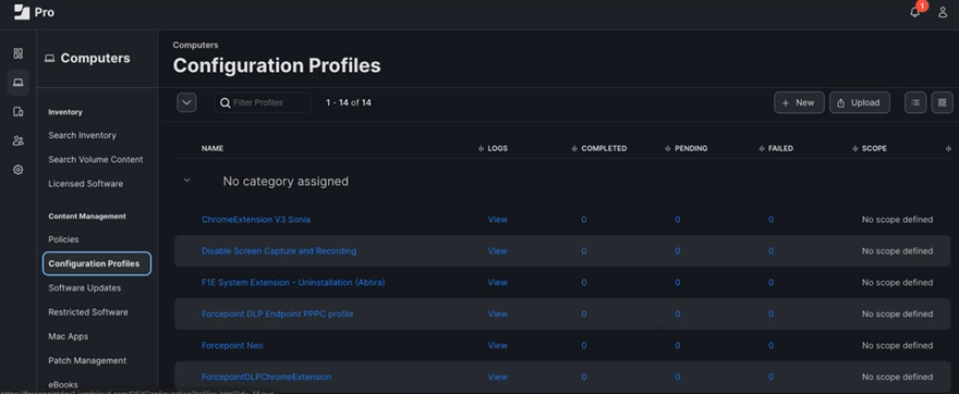 On the Computers tab, select Configuration Profiles.
