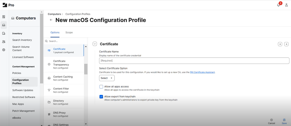 Follow the below steps to deploy the certificate using Jamf: