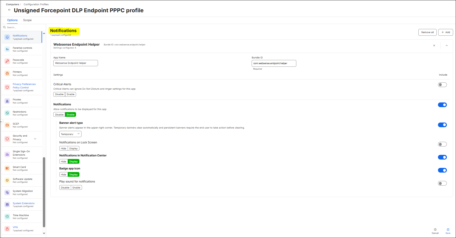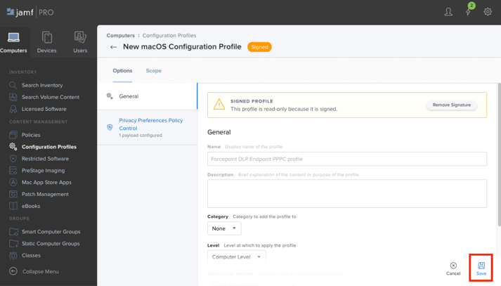 Select the Forcepoint DLP Endpoint PPPC profile.mobileconfig file, and then click Save.