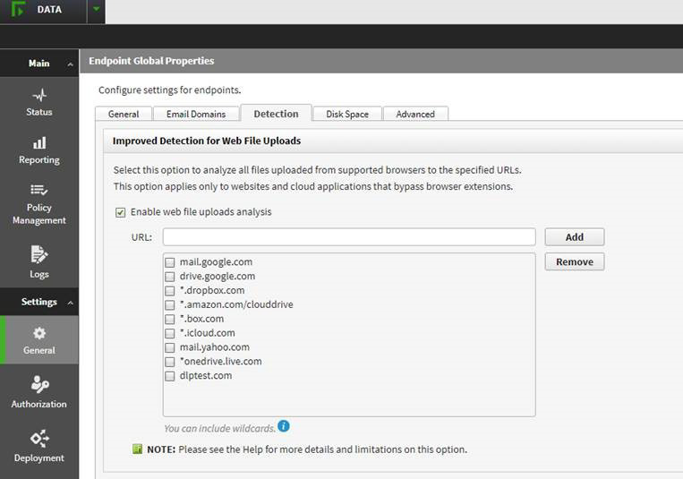 For sites identified that require enhanced file upload detection, enabling web file uploads analysis is required to detect file uploads on the Web channel: