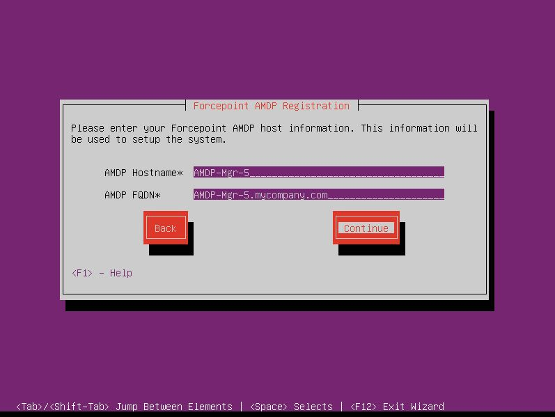 - Enter your Forcepoint Manager host information and select Continue.
