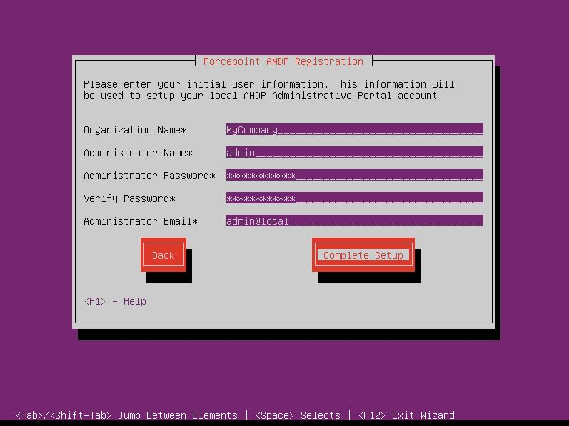 Name, Administrator Password, and Administrator Email. Select Complete Setup.