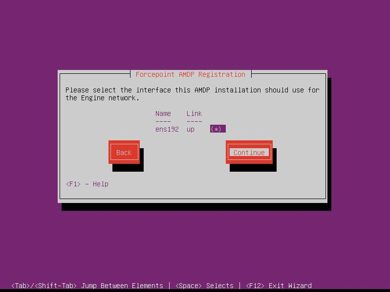 - Select the interface for the Engine network and Continue.