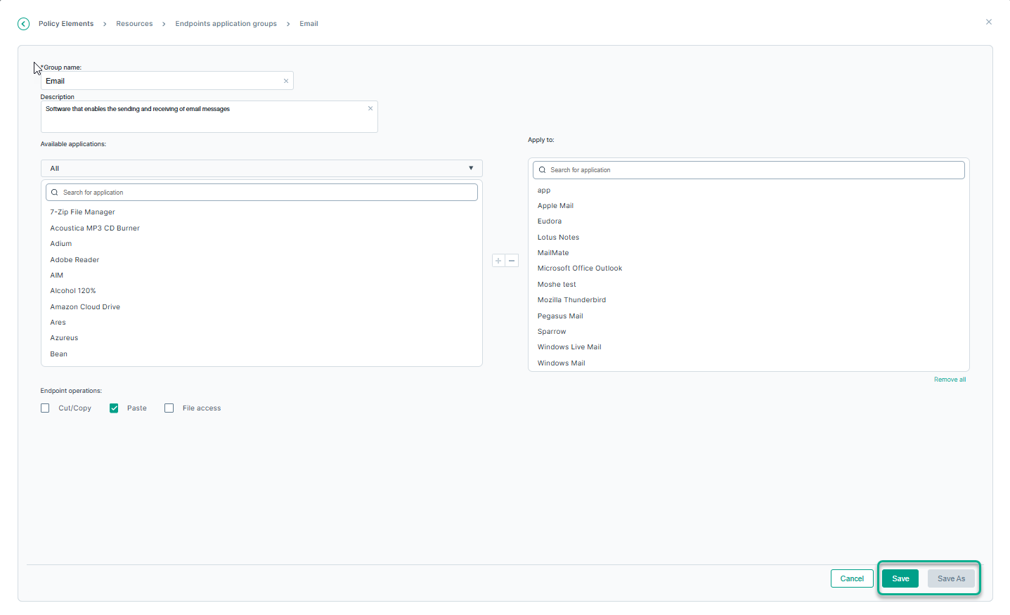 Note: It is possible now to edit predefined endpoint application groups. Also, it is now possible to