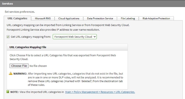Import URL categories to Forcepoint DLP