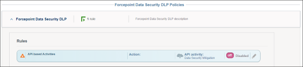 After the Forcepoint DLP and Forcepoint CASB integration is configured and the DLP Cloud Application license is active in Forcepoint CASB, a new Forcepoint Data Security DLP policy