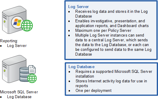 - You may have one Log Server instance for the entire deployment, or multiple Log Server instances (see Additional reporting considerations), but you can never have more than one Log Server per Policy Server.