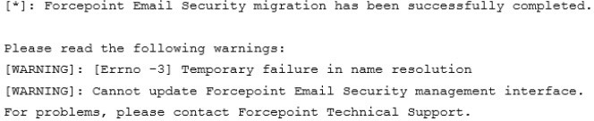 If you migrated Forcepoint Security Manager to Azure, it is necessary to reset the Forcepoint Email Security licenses for each of your appliances. Contact Forcepoint Technical Support Forcepoint Technical Support for assistance with this step.