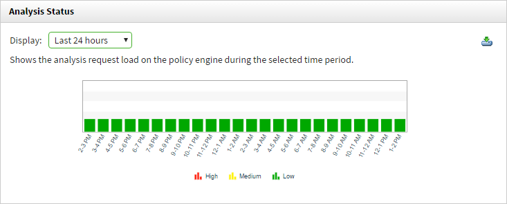 Red on the chart indicates a heavy load on the policy engine during the corresponding period.