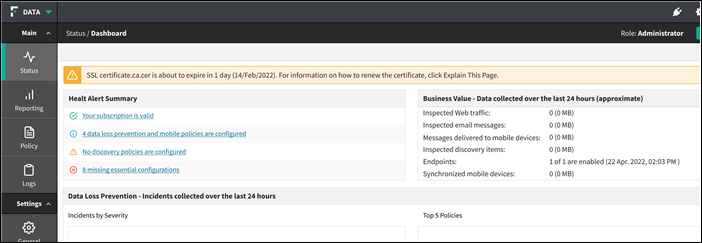 Note: To resolve the DLP SSL Certificate expiring issue, you must have an updated DLP Certificate Authority (DLP ca.cer) or you have to renew the same. See the article Forcepoint DLP CA.CER Certificate Expires Every 5 Years / DLP Certificate Recreation