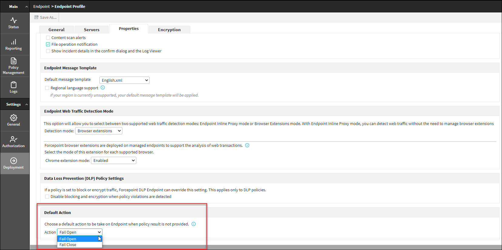 Note: The regional location support applies to Forcepoint F1E versions 21.07 and above. For previous endpoint versions, only the default language is displayed to the endpoint use, regardless of the endpoint operating system language setting.