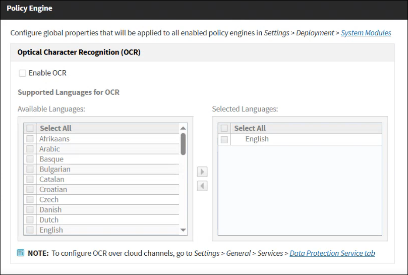The policy engine is responsible for parsing data and using analytics to compare it to the rules in Forcepoint DLP policies. There can be multiple policy engines in a deployment to manage high transaction volumes.