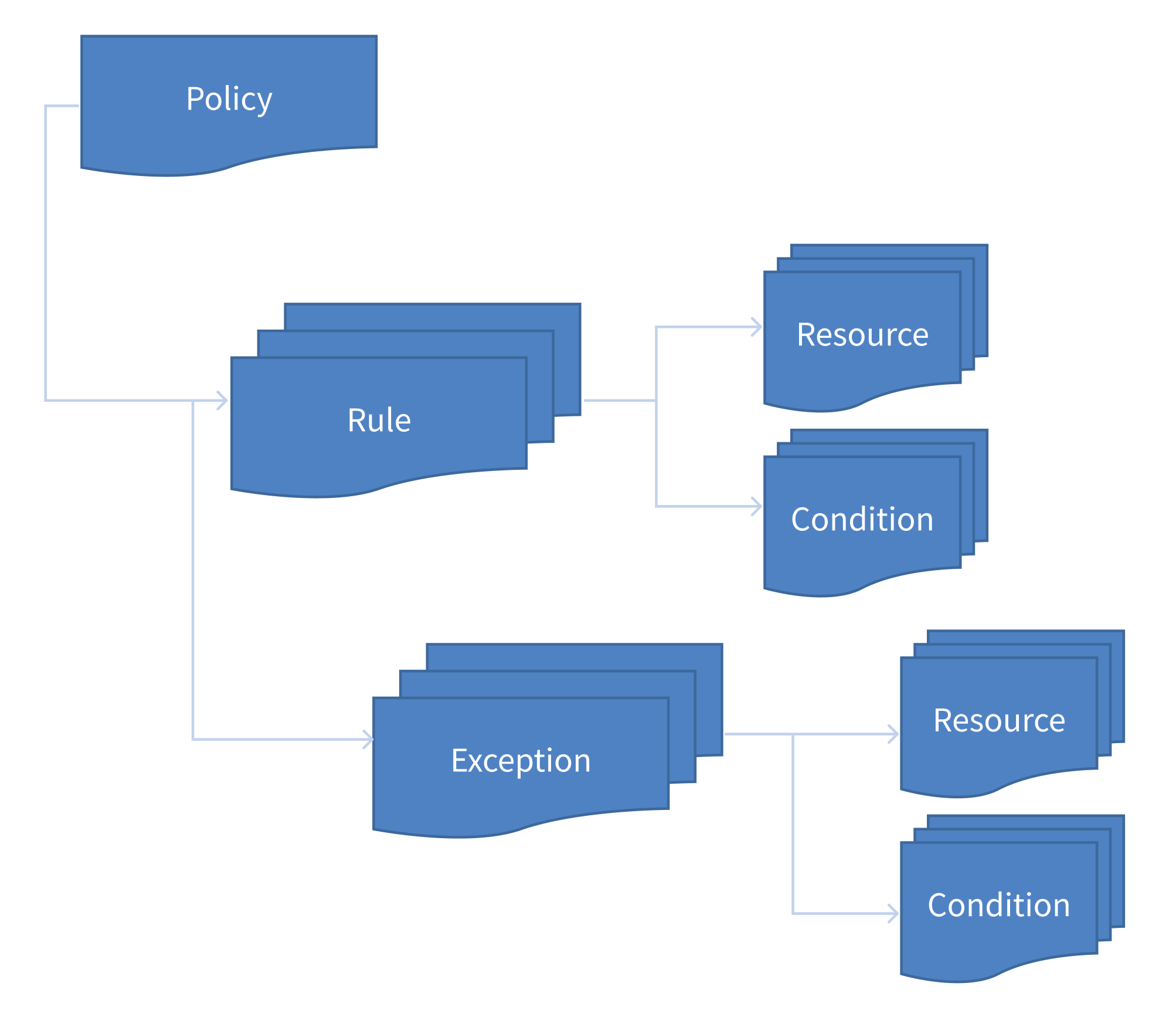 In Forcepoint DLP, policies contain rules, exceptions, conditions (defined by content classifiers), and resources. This is true of predefined and custom policies.