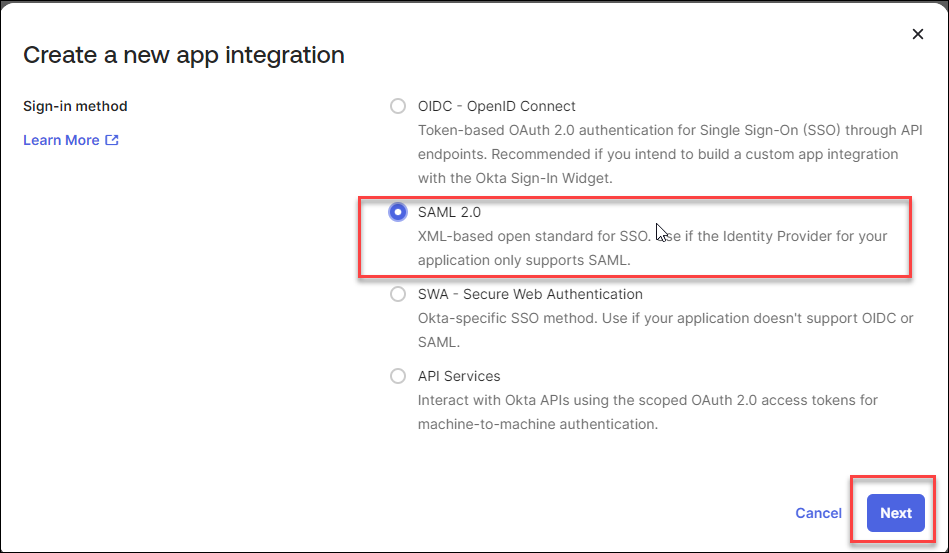 Complete the following steps to configure Okta with SAML 2.0 protocol.