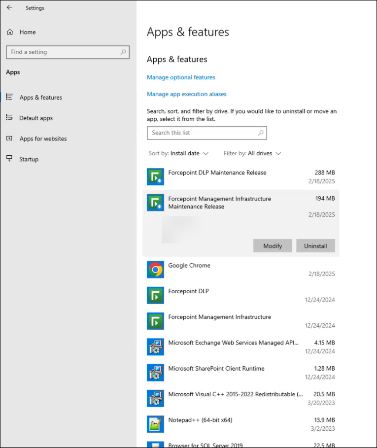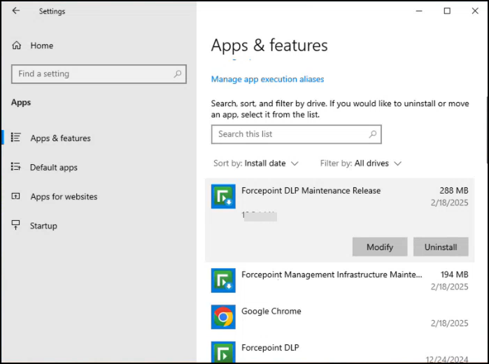 To remove the Forcepoint DLP Maintenance Release installer, apply all steps (1-3).