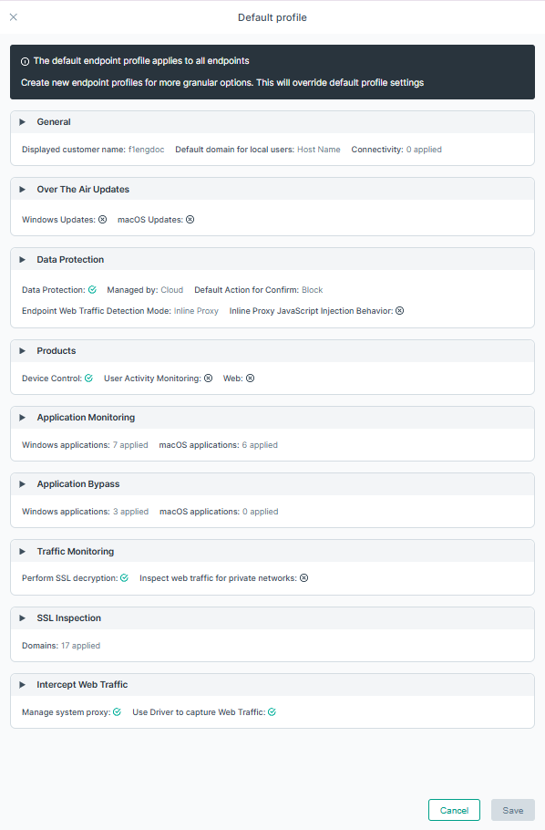 When creating new custom endpoint profiles for more granular control, the custom profiles inherit the default profile attributes but admins can override the default profile settings in a custom profile, that is applied to a select group of users.