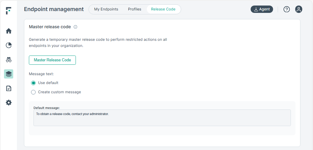 Use the option Master Release Code to generate a master release code that applies for all endpoints.