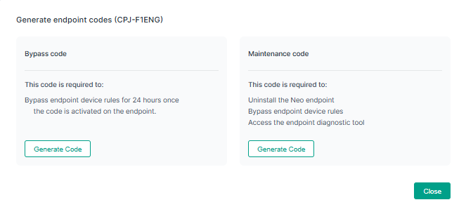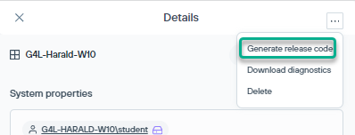 Use the Generate Release Code menu option on the section to generate an endpoint specific release code.You can select to generate the below code: