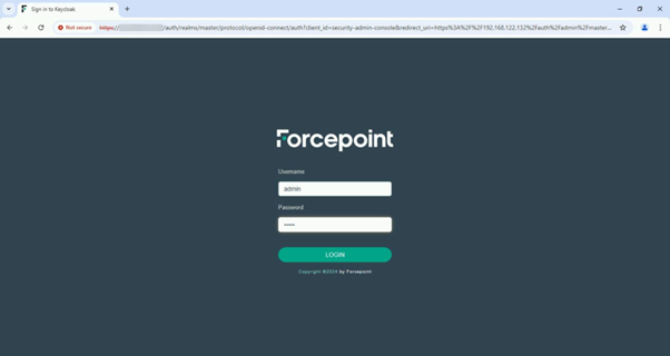 - Open a browser and type the following URL to access Keycloak. https://<your_DSPM_IP>/auth/admin/master/console.