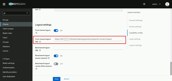- Scroll to Log out settings and locate the Front-channel logout URL field. Change the local host entry to the DSPM IP address. This displays the log in screen instead of the 'You are getting