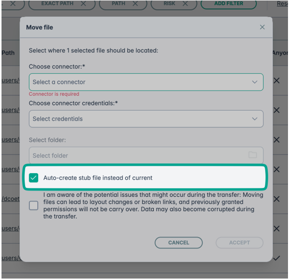 - The Solution: With File Stubs, you can move high-risk files instantly and leave behind a placeholder PDF that informs users where the file has been relocated.