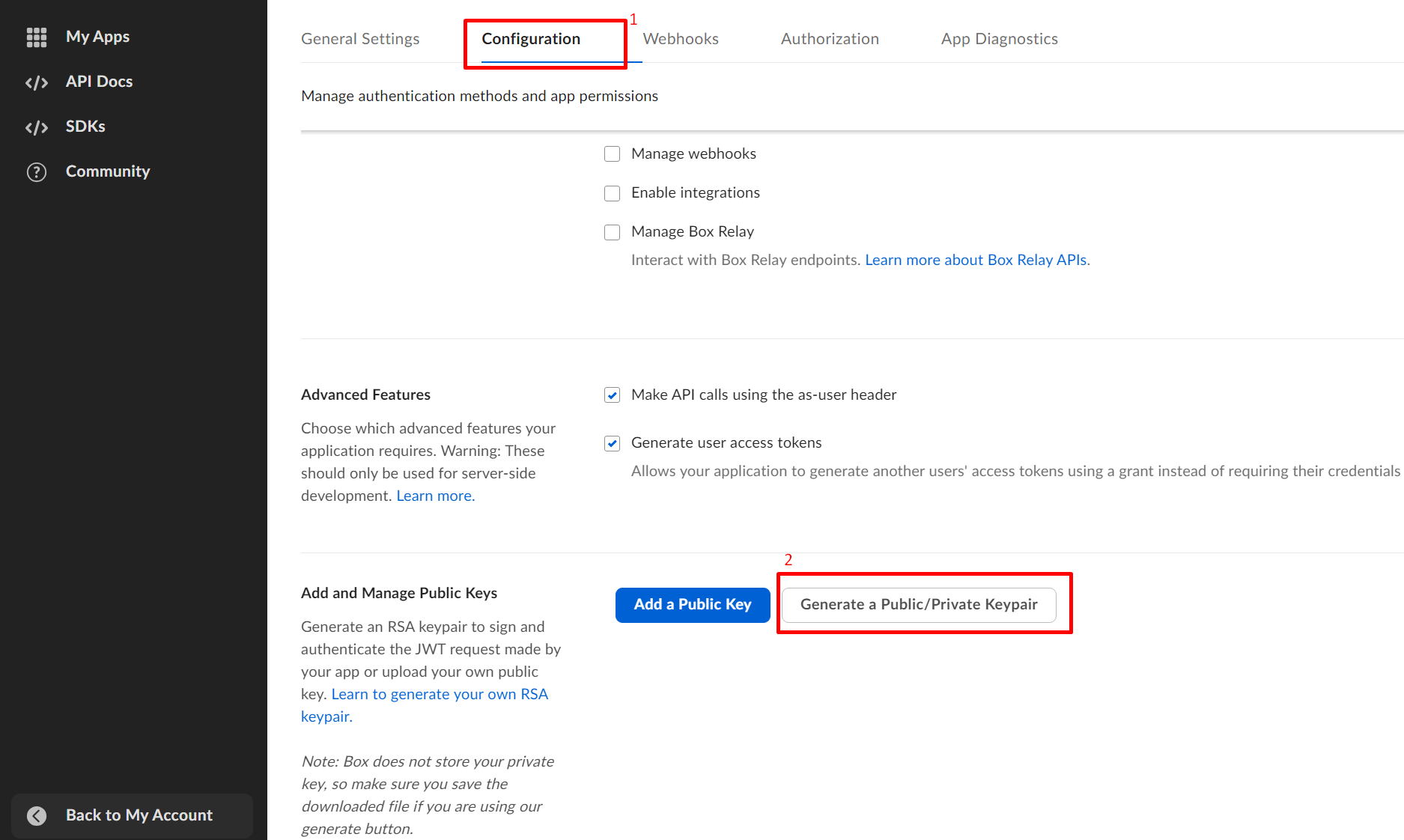 In the same Configuration tab, scroll down to Generate a Public/Private Keypair.