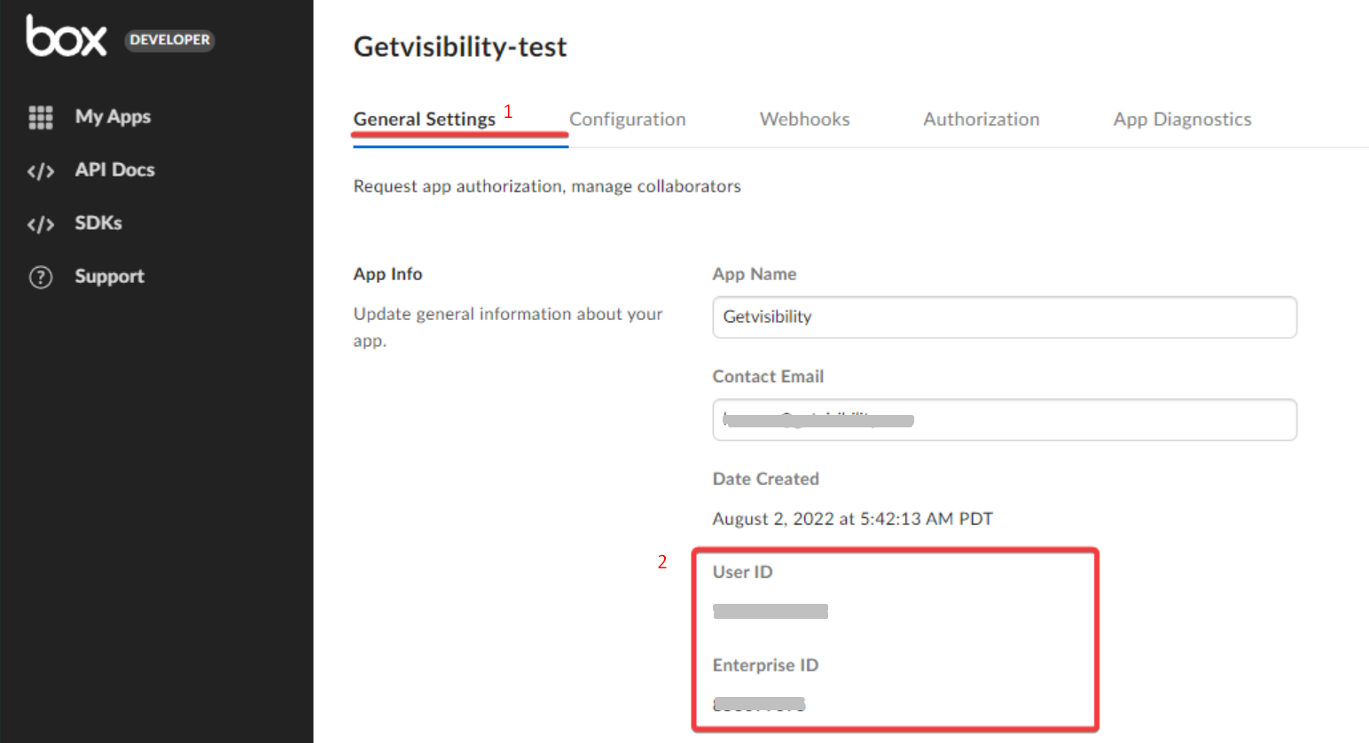 Make note of User ID and Enterprise ID of the App in General Settings tab.