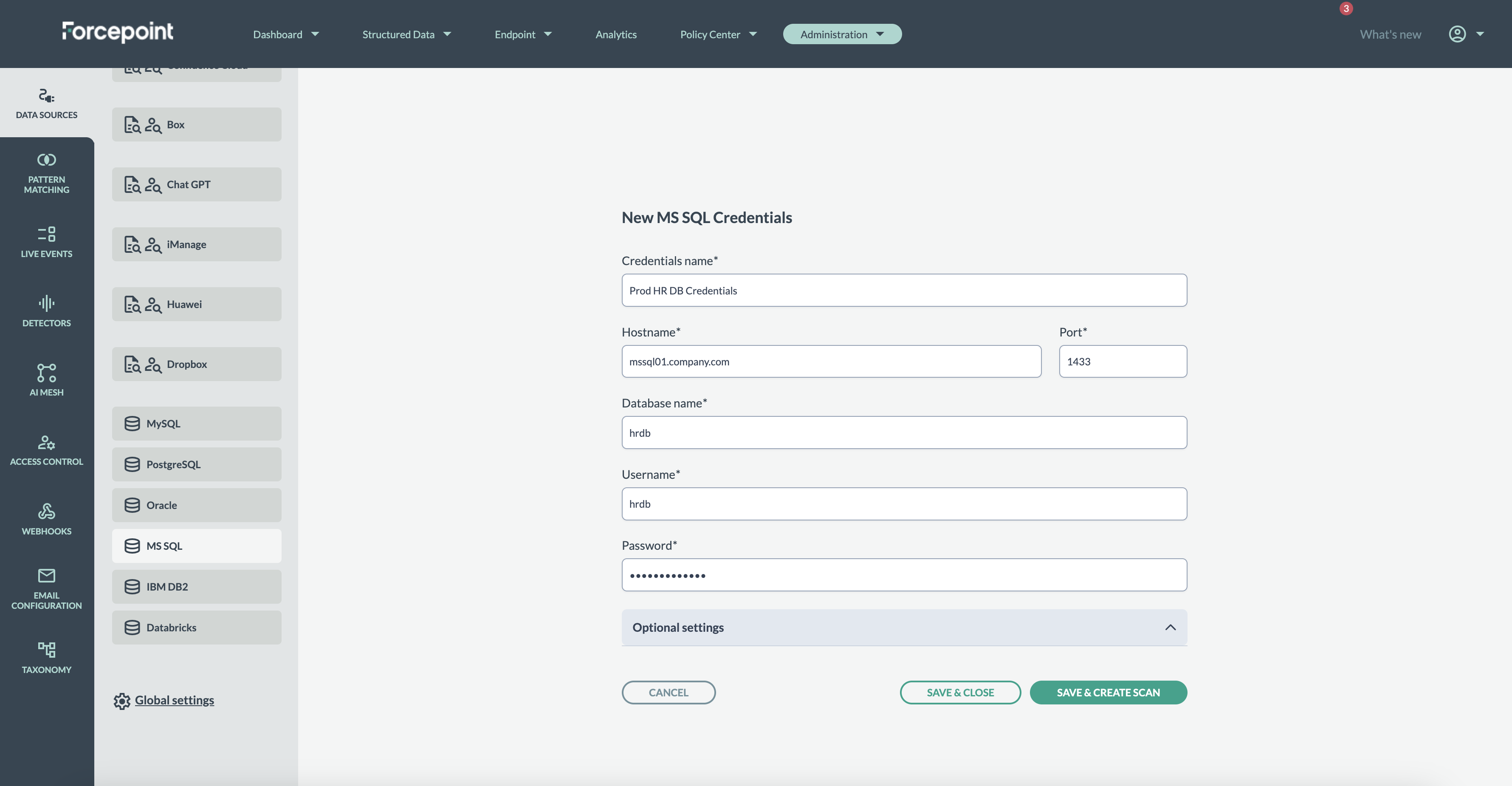 - Click Save & Create Scan to save the credentials and proceed to the scan configuration. The system will attempt to connect and will display an error if the