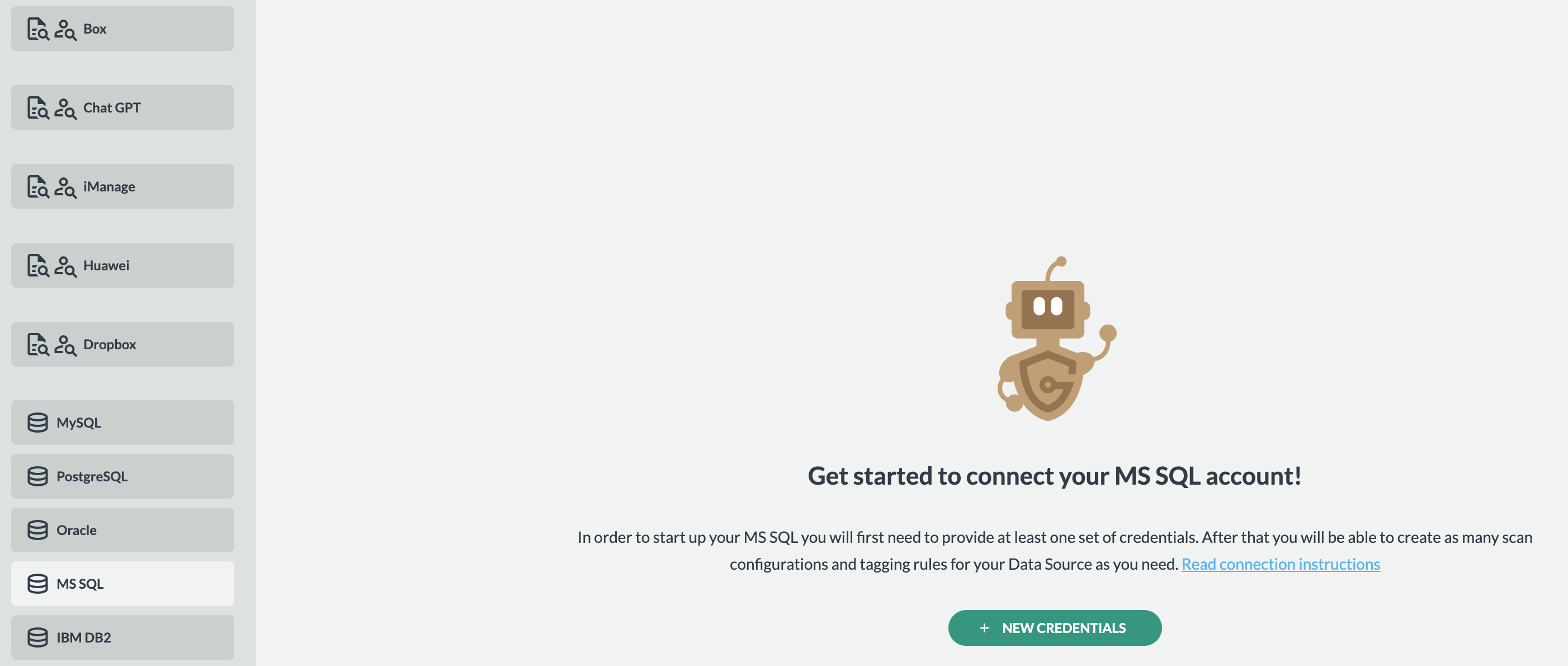 - Click Add Credentials to create new MS SQL connection credentials.