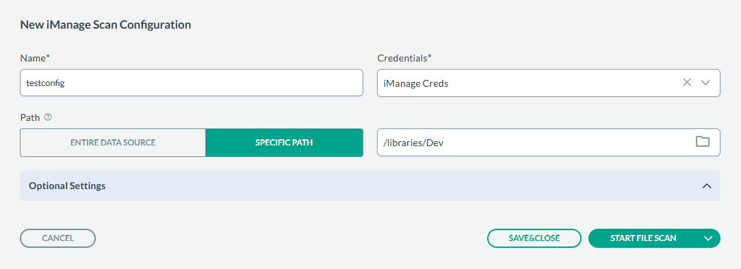 - After entering the values, you can either just Save & Close or you can proceed onto creating a scan configuration by clicking Save & Create Scan.