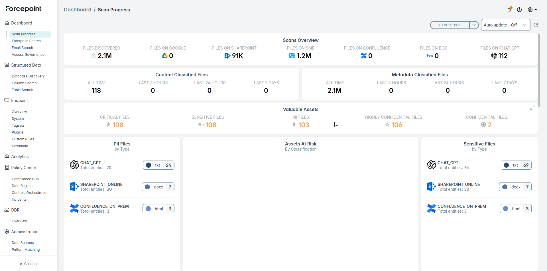 - Valuable Assets: Number of files containing critical, sensitive, PII, highly confidential or confidential data.