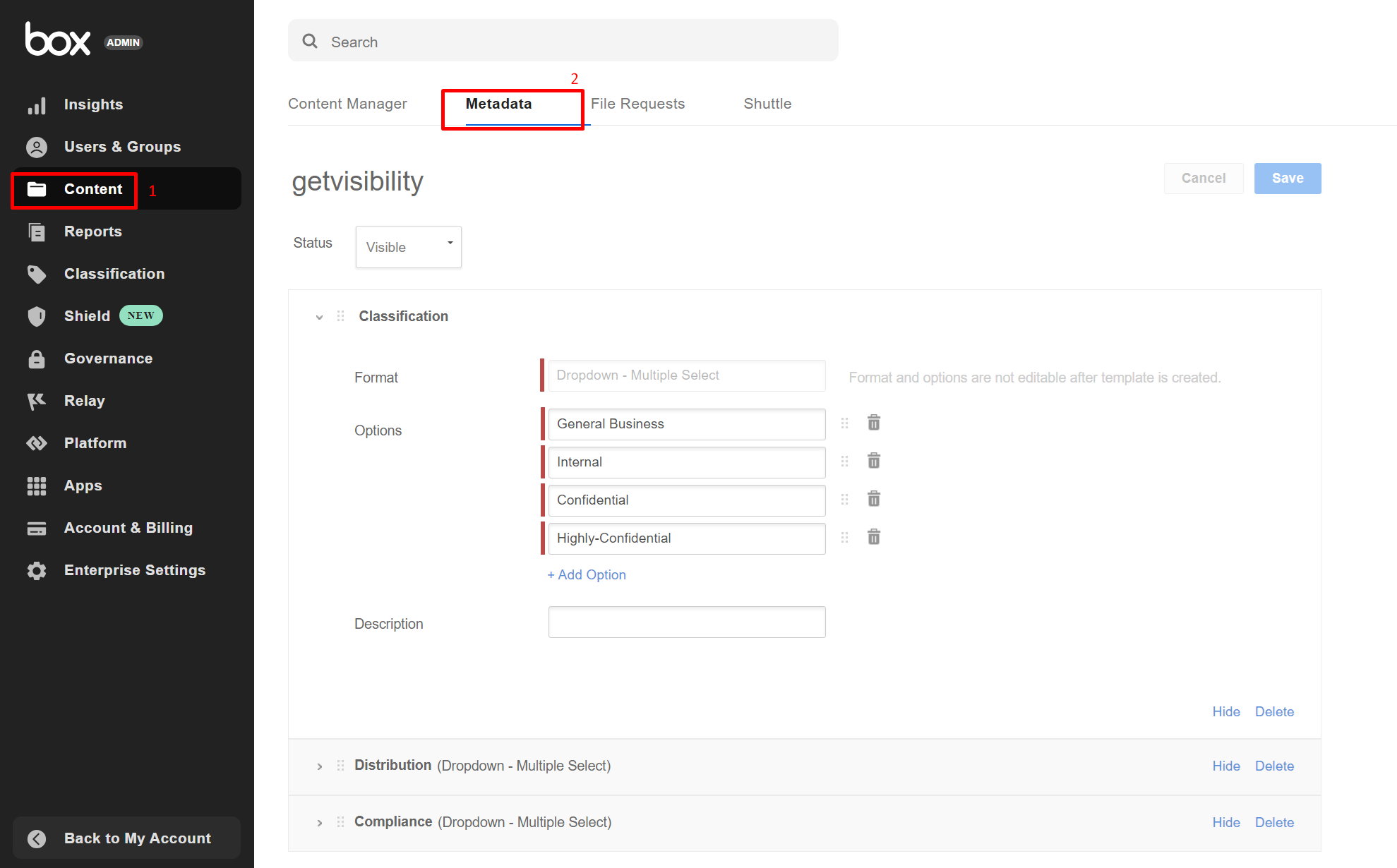 A metadata template must be created to support Forcepoint's tags. Please follow the below steps to achieve this.