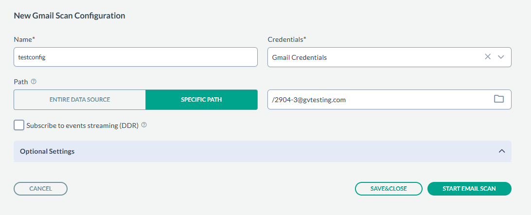 - Next, click SAVE & CLOSE to just save the configuration or you can start the scan by clicking START EMAIL SCAN.