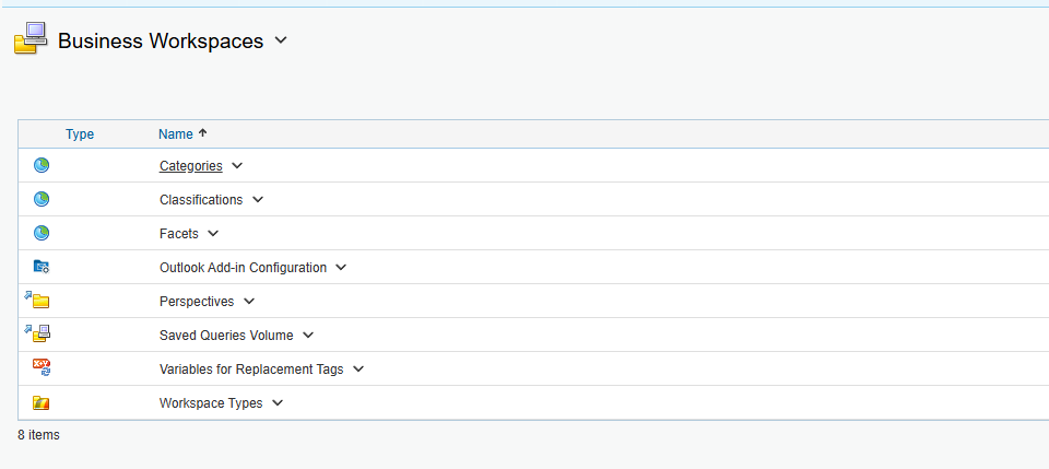 - We need to create a template for tagging in Opentext console. From the Enterprise menu, select Business Workspaces.