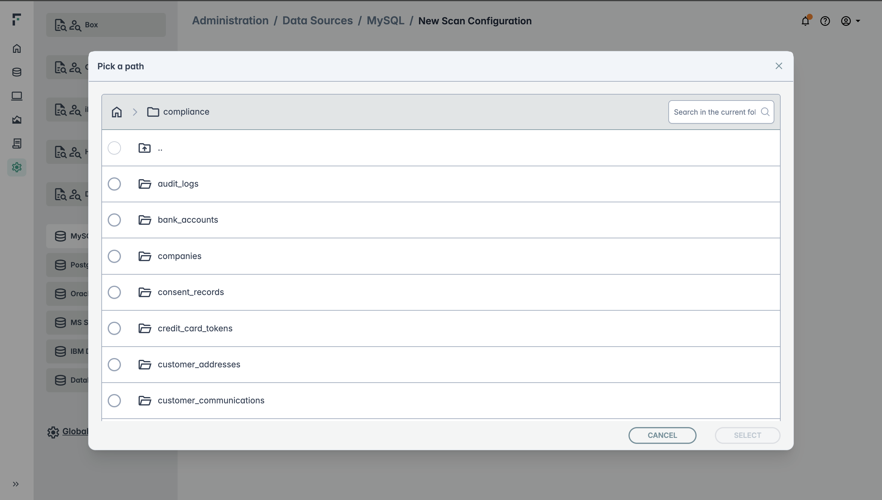 - Next, you can check the box against the specific tables from the displayed list that you want to include in the scan and click Select.