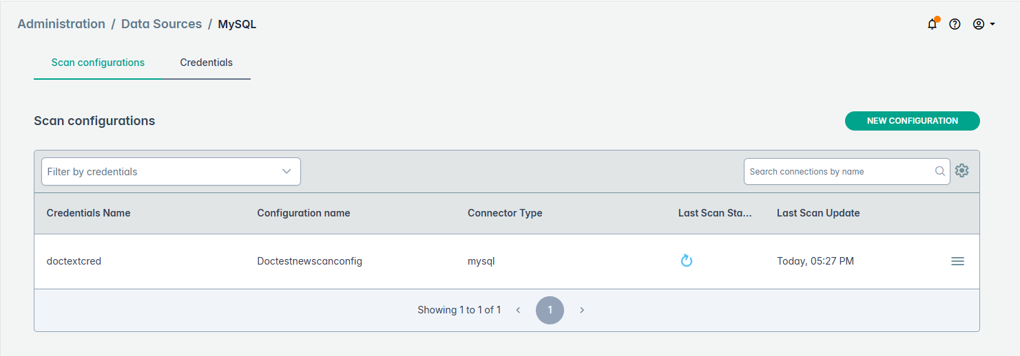 If the connection succeeds, the New Scan Configuration page appears. Enter a Name and select the specific credential from the drop
