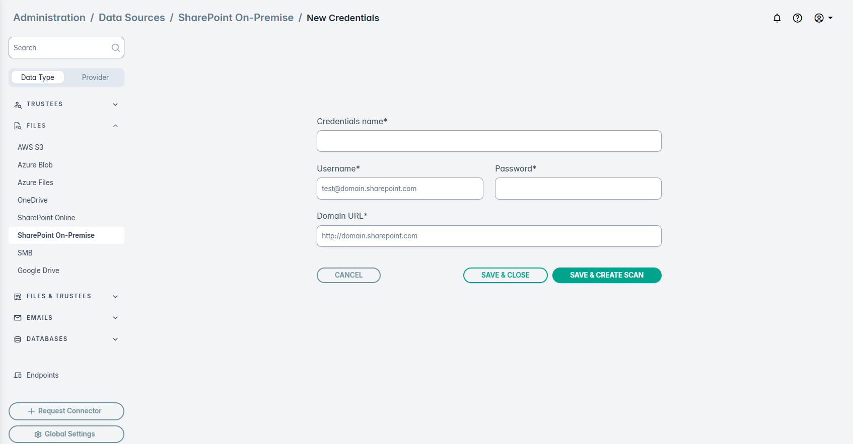 Navigate to Administration > Data Sources > SharePoint On-Premise.