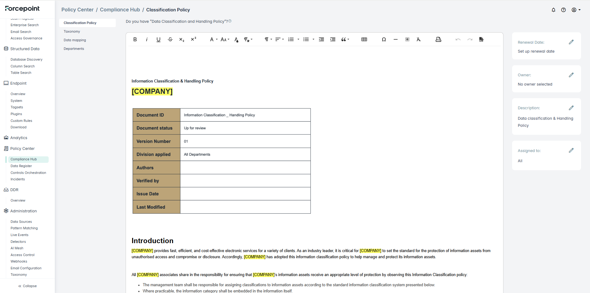 In the event you lack an established policy, Policy Center provides a robust policy template. This resource is designed to facilitate focused workshops for policy creation, offering a solid foundation that can be tailored to your specific needs. Alternatively, you can also deploy our default policy to quickly meet compliance requirements with a comprehensive, ready-to-use solution.