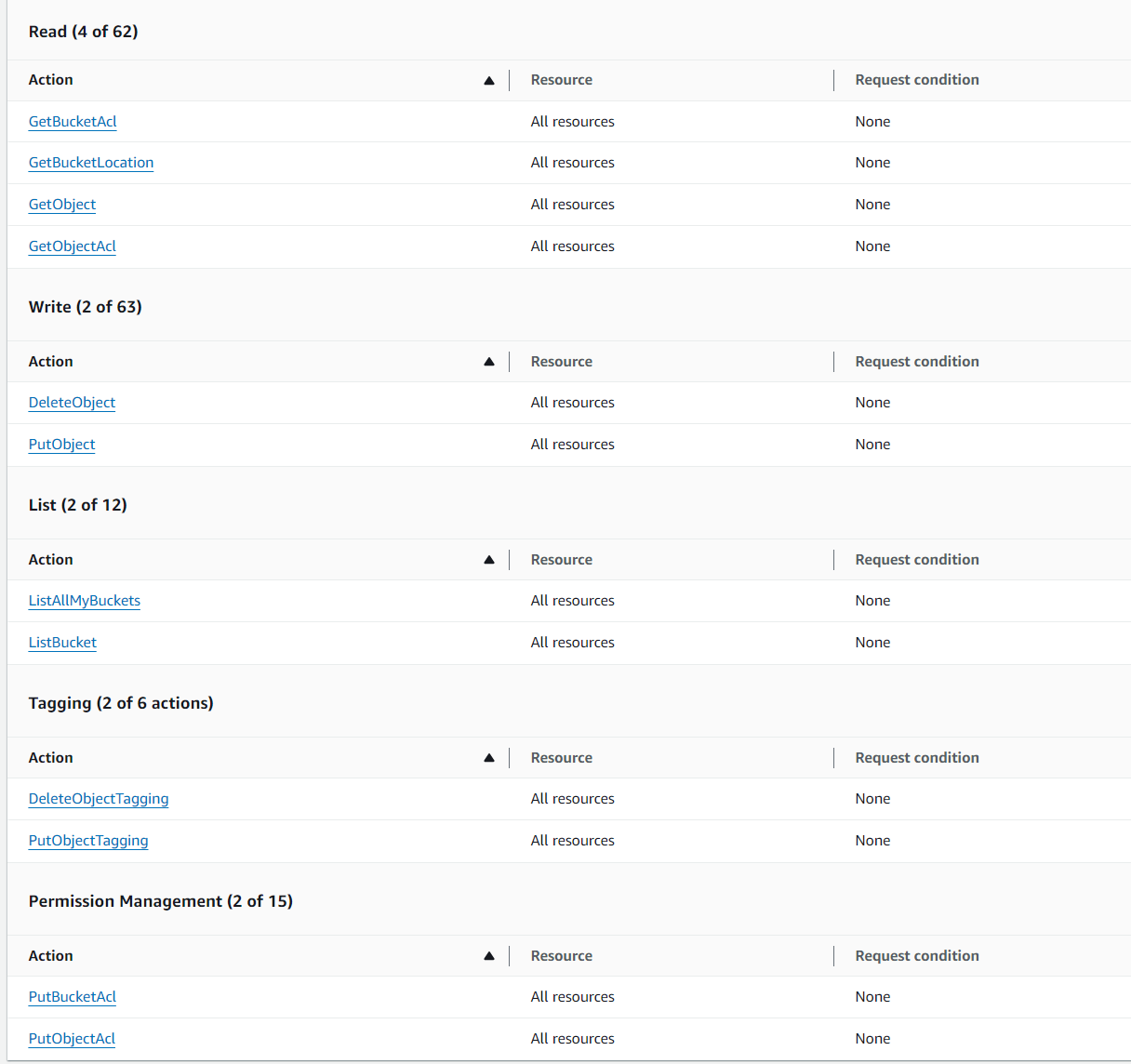 - Permission Management > PutObjectAcl