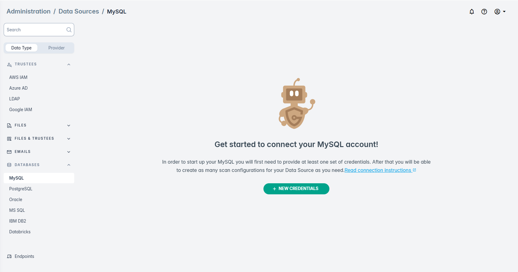 - Create a user account with read access to database metadata (schemas, tables, and views) for the product to run the scanning process.