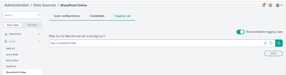This feature allows you to add Forcepoint DSPM file classification tags to files containing sensitive data stored in a SharePoint system.
