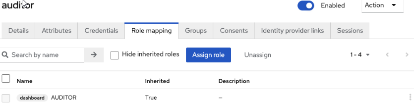 - The role appears under Role mapping in the user profile.