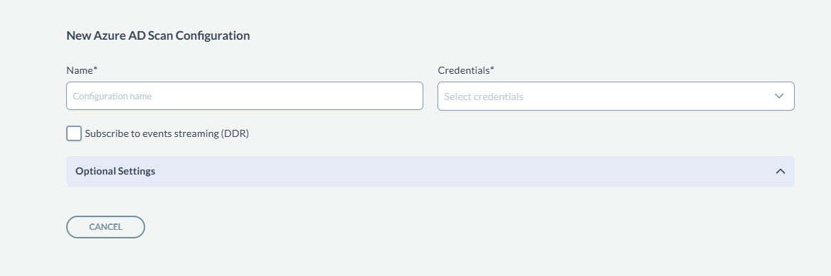 On the tab Scan configurations, click New Configuration, next enter the name and select the credential created in above steps.