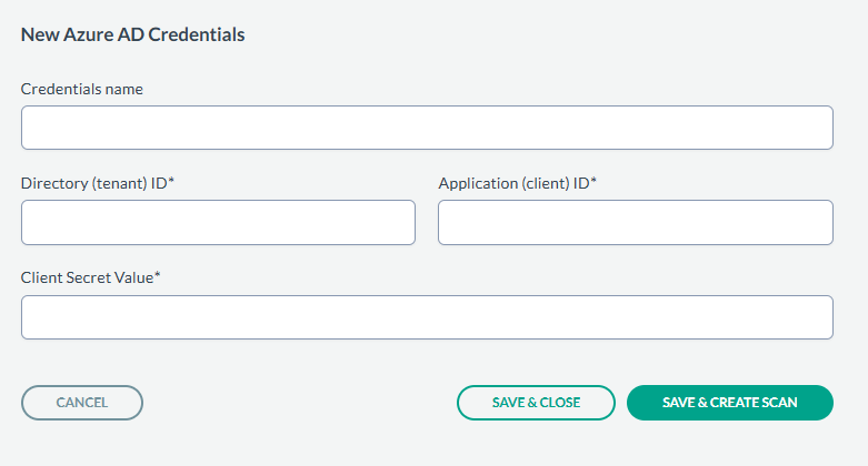 Provide the Credential Name, Directory (tenant) ID, Application (client) ID, and Client Secret