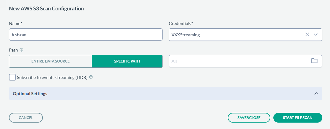 scan, or leave the path as empty to scan all buckets. An example is shown below: