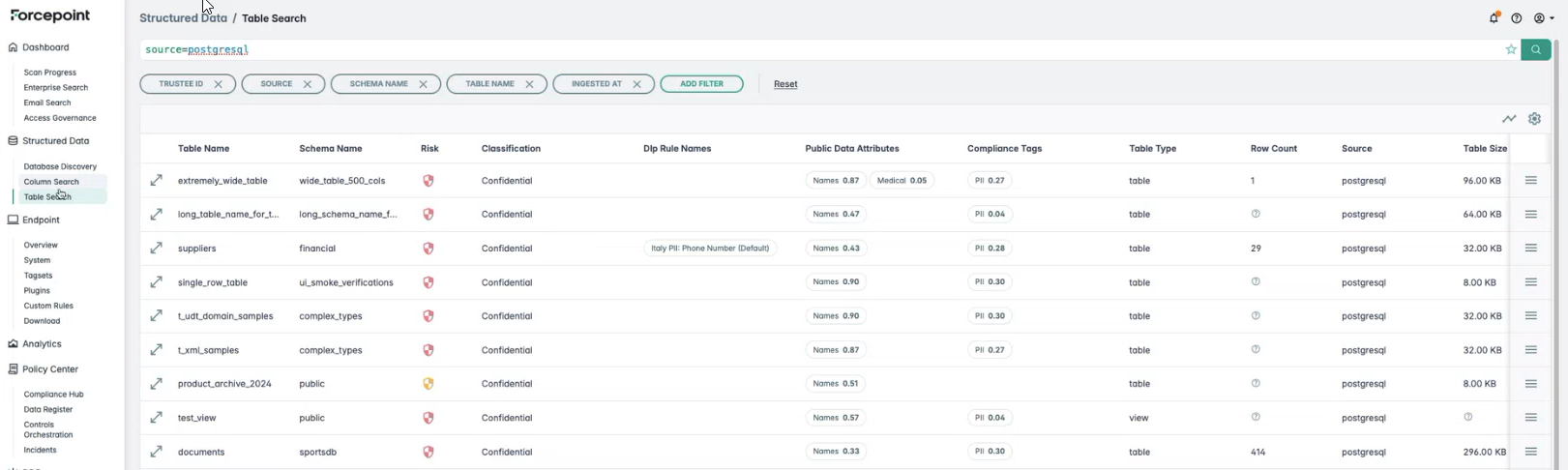 For example, clicking on the count (233) displays the total tables discovered from PostgreSQL database.